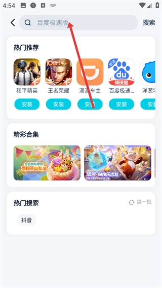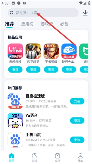 1、在应用商店的主界面上,点击顶部的搜索栏,这样就能进入搜索输入的状态了。