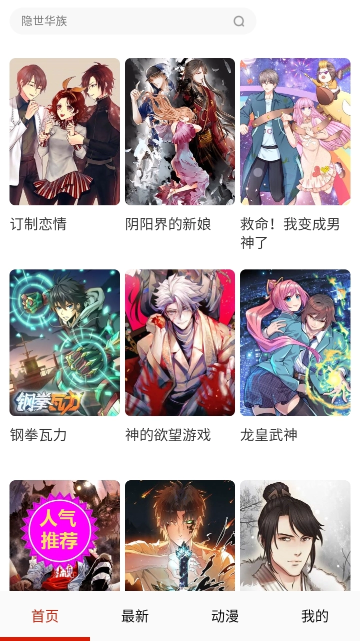 2.进入到软件首页,首页中能提供大量的人气推荐作品。