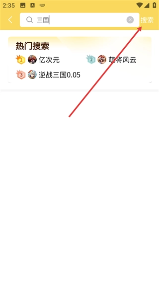2、在搜索页面输入“三国”,点击【搜索】按钮,触发搜索操作。