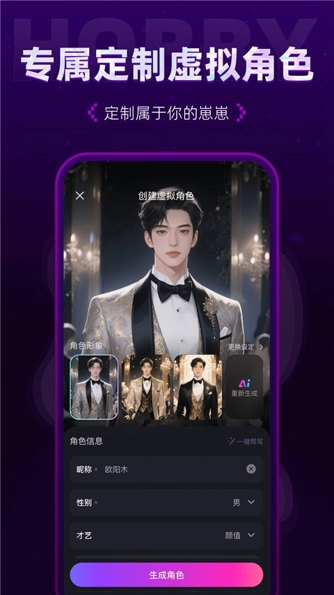 hobby是一款深受众多年轻男女青睐的社交互动平台。该软件允许用户自主创建各类虚拟人物形象,能够在线与不同的虚拟男性、女性角色开展互动聊天,体验陪伴式的交流感受。此外,软件还设有丰富多样的社区话题,用户可以挑选感兴趣的话题加入讨论,从而快速找到志趣相投的朋友。