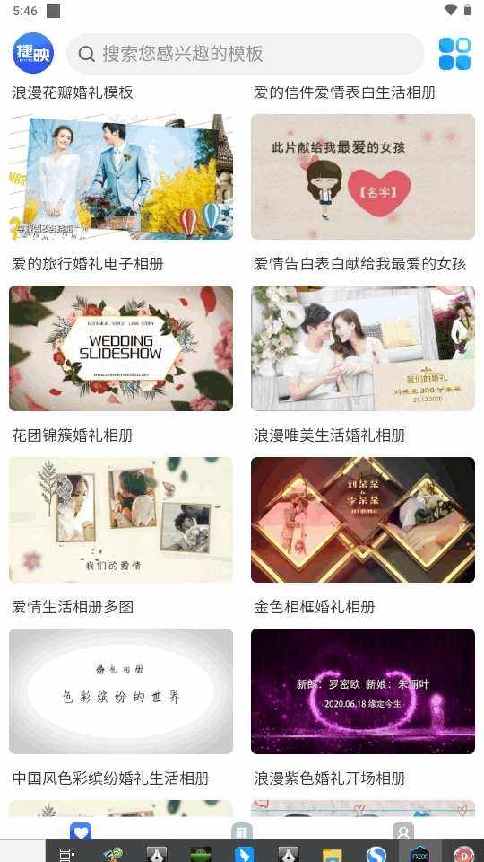 1、模板选择多,包含婚礼、年会、旅行、企业宣传等,满足你的各种需求。