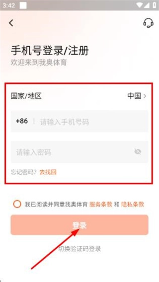 4、在密码登录界面填写手机号码和密码,勾选相关协议后点击登录完成账号登录操作。