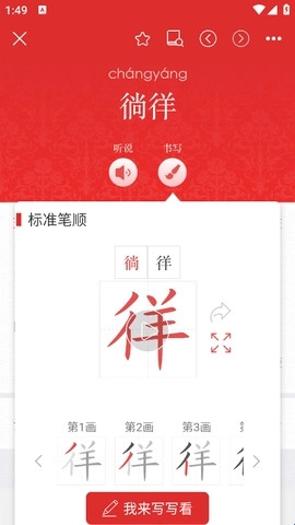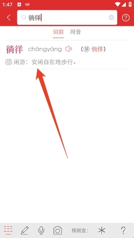 1、要是想查询某个字或者词,直接在首页的词典搜索框进行搜索查找就行,比如我想查“徜徉”这个词的发音。