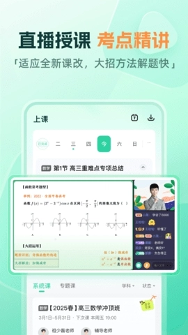 2、涵盖高中三年所有学科,每一个学科都有自己独立的版块,学生进入后直接学。