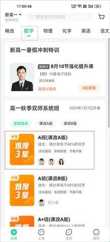 1、进入软件后,选择你想购买的课程并进入对应的分区版块,比如若你打算购买数学课程,就进入数学课程所在的分区。