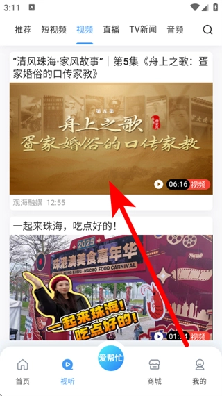 1、打开观海融媒应用,在首页底部找到“视听”选项并点击,即可进入视听页面。