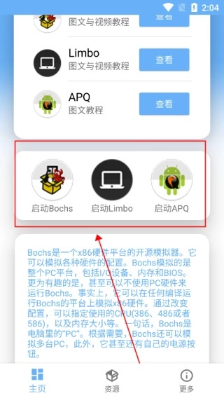 2、以bochs为例,进入之后会有该虚拟机的简介,点击