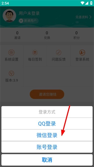3、在登录方式窗口,选择微信登录选项,即可通过微信登录账号。