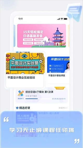 2、平台上的所有优质课程资源,按照不同的类型进行规整布局,用户根据个人需求有针对性地进行学习。