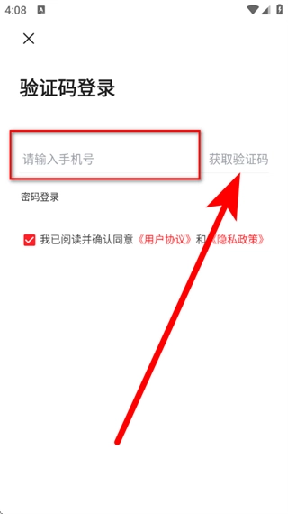 3、在验证码登录页面,输入手机号,点击获取验证码。