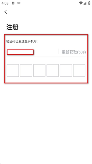 4、在验证码输入框中,输入验证码,完成账号注册操作。