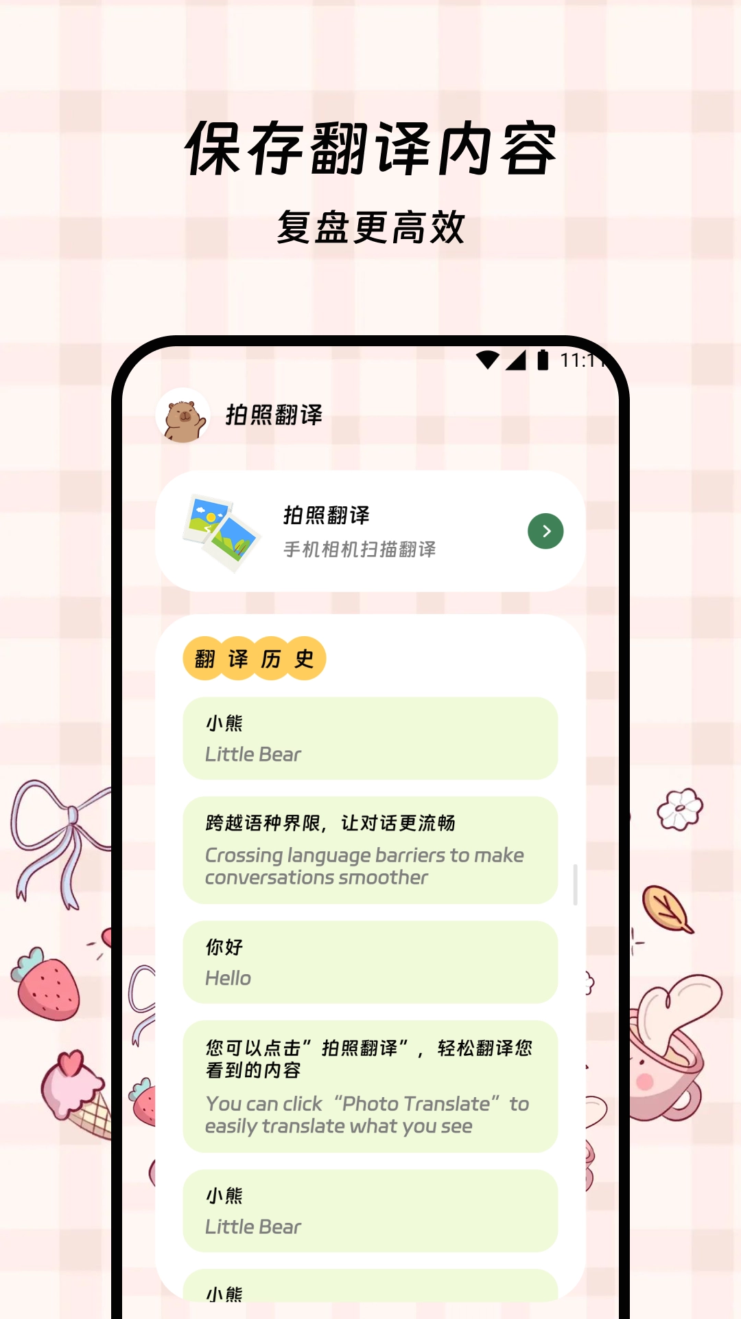 3、翻译历史自动生成时间轴档案,支持原文译文对照回顾与收藏管理。