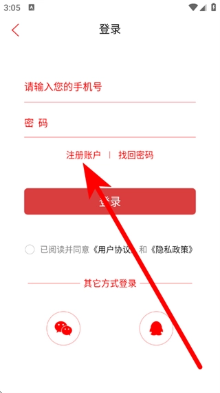 3、在登录页面,点击注册账户,进入注册页面。