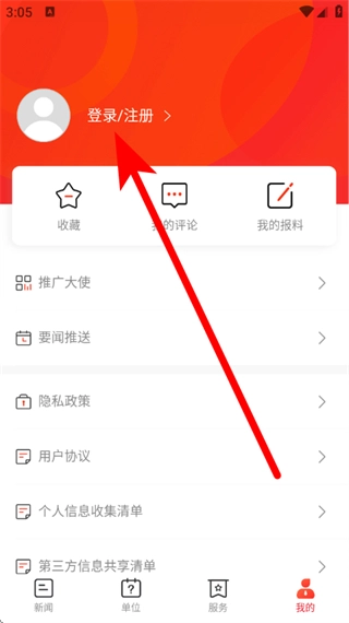 2、在我的页面,点击登录注册,进入登录页面。