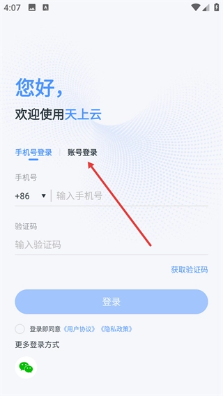 1、点击【账号登录】选项,进入账号登录页面。