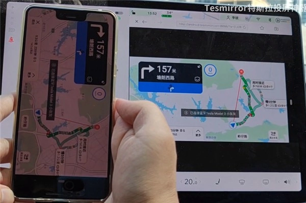 5、最后特斯拉屏幕上就会实时显示手机画面了。
