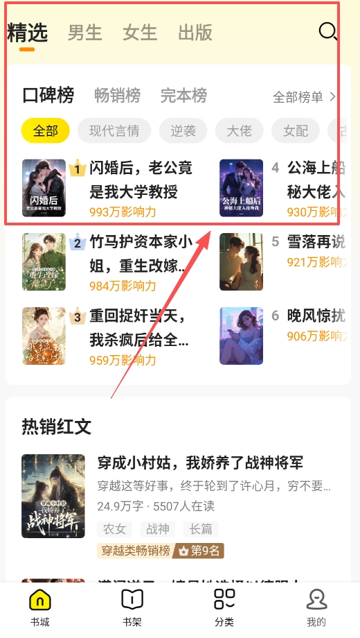 登录后,探索书籍的主要入口为“书城”与“分类”。在“书城”板块,你能够浏览系统推荐的各类榜单,从而知晓当下最热门的小说。
