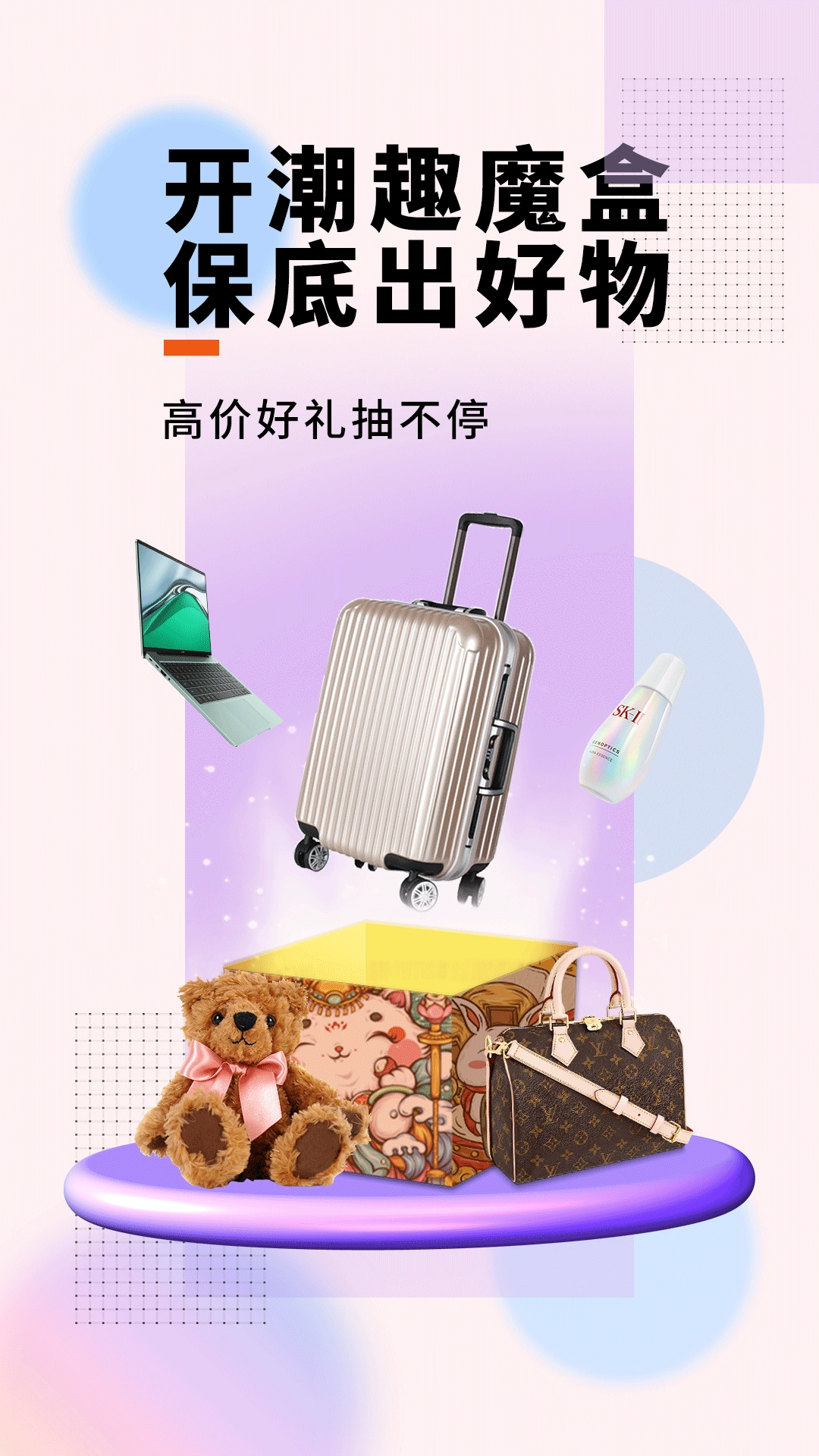 1、潮趣魔盒软件里包含手工模具、相机、耳机、平板电脑等各类实用好物,能不能抽到心仪的就看你的运气啦。