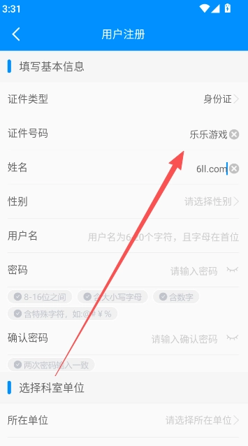 3、使用手机号码短信验证码的方式快捷注册,进入用户注册界面补全完整信息。