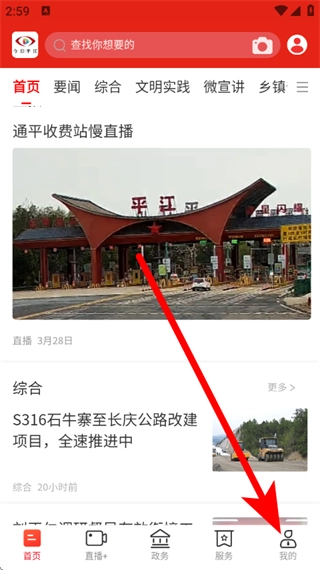 1、打开今日平江应用,点击底部导航栏的“我的”选项,进入个人中心页面。