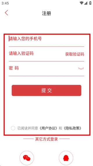 4、在注册页面,填写信息,勾选协议后点击提交,完成账号注册。