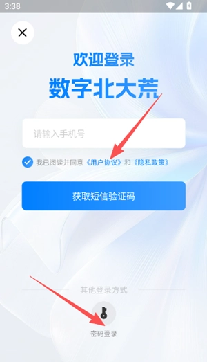 1、点击登录按钮,可选择通过手机号码接收短信验证码验证身份,或是直接输入密码的方式进入系统。