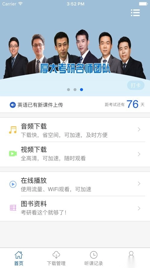 具备考研时间倒数和每日打卡功能