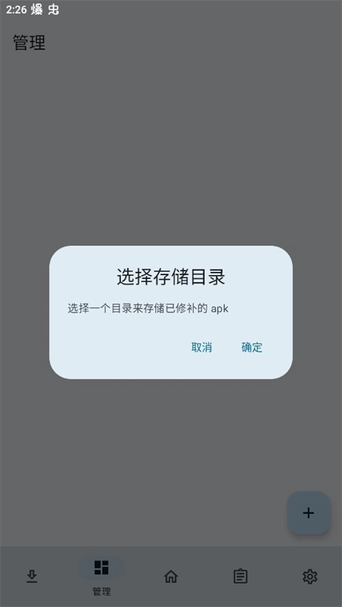 1、打开软件后进入管理功能界面,点击右下角的加号按钮。