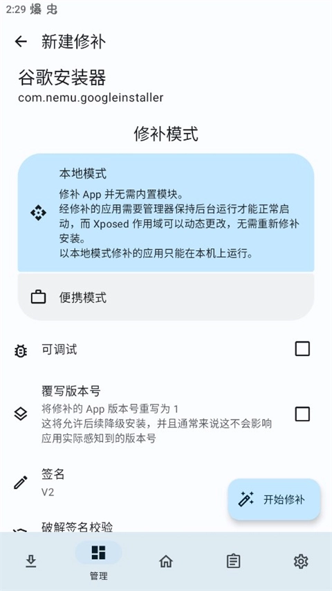 无需搭配Shizuku就能通过便携模式修补App并XP模块