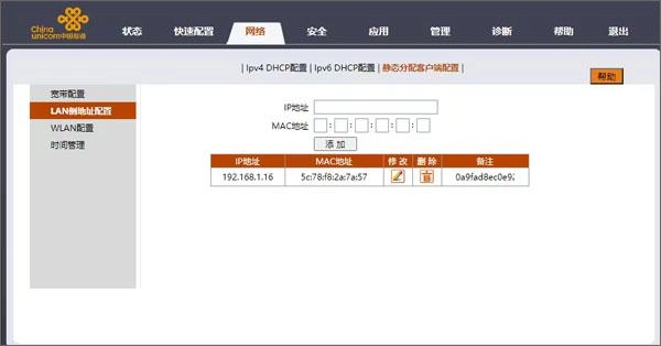 配置最简单的方式是路由器使用桥接模式,但是这样对原本的网络功能有较大的影响。 这里保留光猫拨号的原始链接方式,通过2次端口转发实现连通。 首先为了保证路由器lan地址不变,可根据路由器使用的mac地址配置静态ip地址。