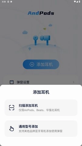 2、AndPods支持耳机连接与电量显示,快捷配对耳机,智能识别耳机型号,连接时自动弹窗显示电量。