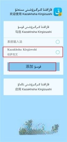 1、第一步先打开输入法,找到哈萨克文选项并选中,然后点击添加按钮。放心,这个设置步骤很简单,一看就明白!