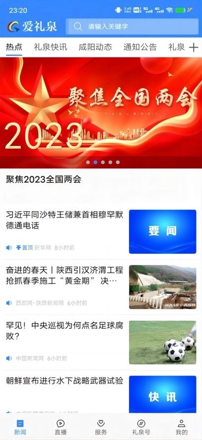 直播功能,可提供礼泉实时直播、新闻直播、党政直播等内容。
