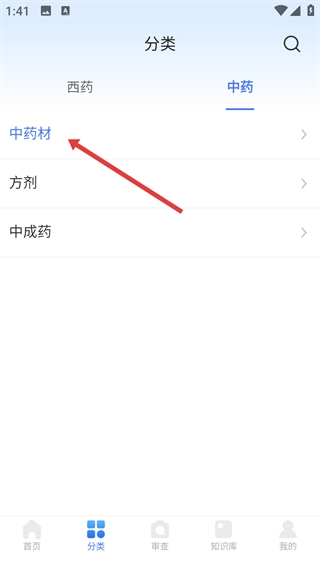 2、在中药分类页,点击【中药材】选项进入对应分类呀。