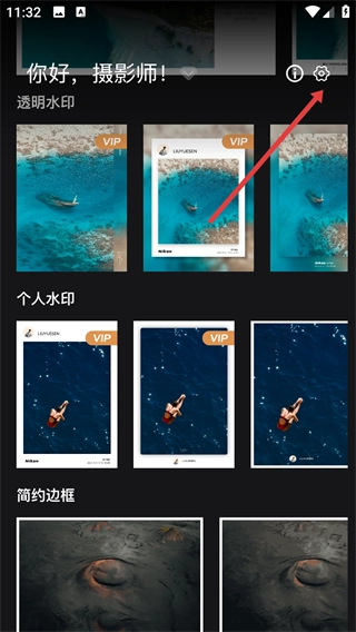 1、打开边框水印大师App,点击右上角的【设置】按钮进入设置页面。