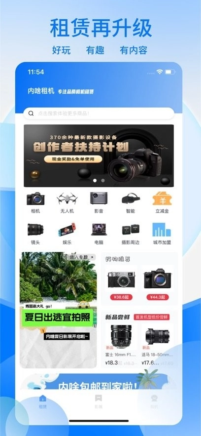 2.内啥是国内首家玩乐旅行装备短租分享平台,全世界好玩的东西都可以在这里租到。
