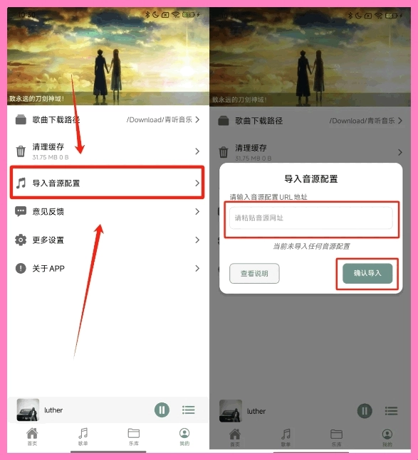 打开软件后,进入【我的】页面,接着点击【导入音源配置】选项。