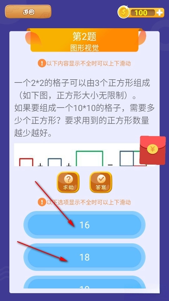 我们在答题的时候上面是题目,下方可选的选项就是我们需要回答的问题答案,选择正确的答案就可以进入到下一关。