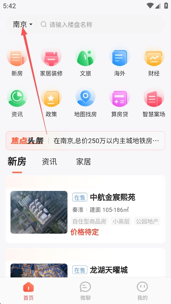 1、打开焦点好房App,将其定位或设置为你当前所在的地区