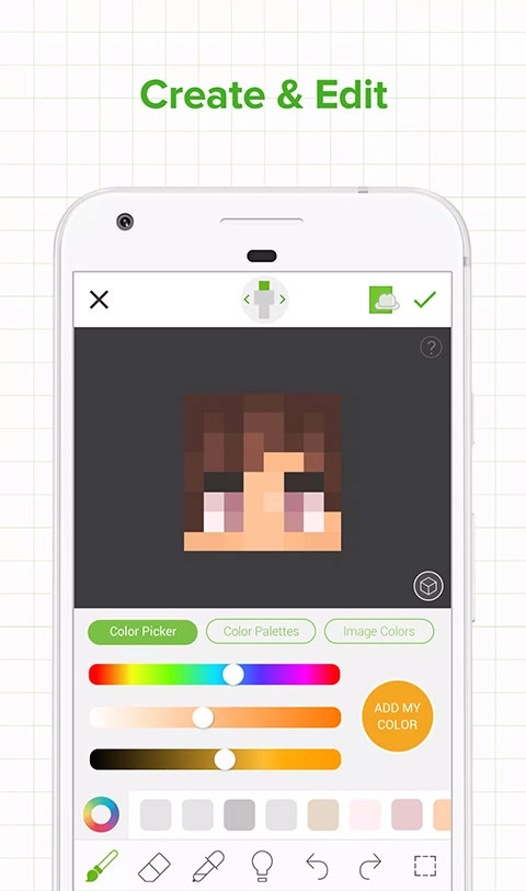 1、Skinseed皮肤制作器配备六个方位的独立编辑视图,助力玩家精准调整皮肤每个像素的配色。