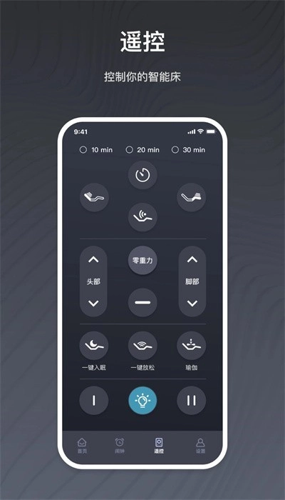 5、使用遥控:通过App控制床体升降,支持多种调节姿势。