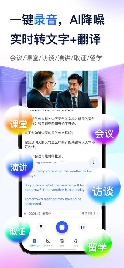 ●学生老师(包括留学生等)课堂、讲座、在线课程、外语学习等,老师讲课开启录音,AI自动转成文字并整理材料,即使是留学课程翻译也毫无压力。