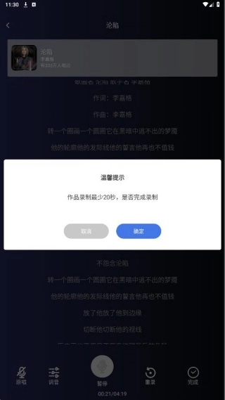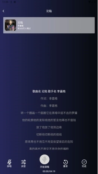 3、自动录制你的唱歌音频,演唱成功,点击完成即可。