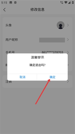4、操作【注销】后弹出【温馨提示-确定退出吗?】弹窗,可选【取消】继续或【确定】完成退出操作。