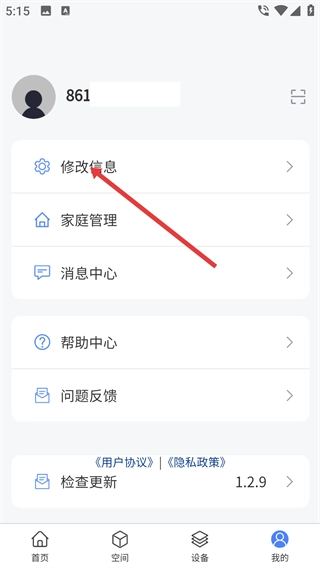 2、进入【我的】页面,可看到【修改信息】【家庭管理】【消息中心】等功能入口,可选择对应选项进行操作。