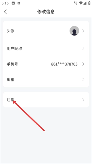 3、进入【修改信息】页面,可对【头像】【用户昵称】【手机号】等信息编辑,也能找到【注销】操作选项。