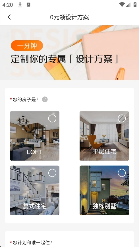 2、根据提示填写房屋的基本信息,如户型、面积和风格偏好等;