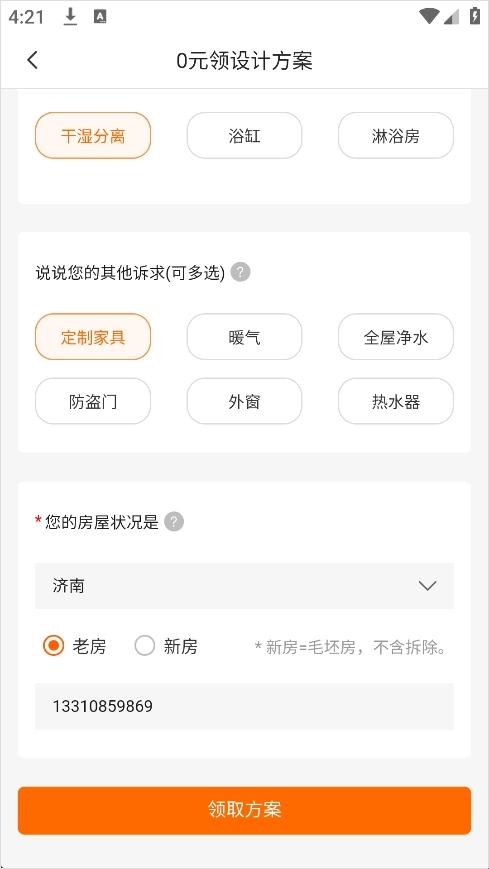 3、信息确认无误后,点击【领取方案】提交设计请求;