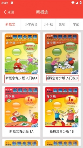 5、该软件还向用户提供小升初、小学英语、前桥、学前等不同学习阶段的教材。