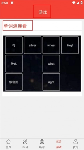 8、软件还为用户配备了单词连连看小游戏,用户能在游戏过程中检验自己的听写成果,实现边游戏边记忆的效果。